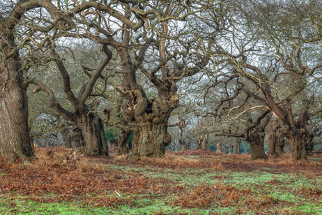 This ancient park is woodland on sandy soil, with mature pollarded oaks, while The Thicks is a dense wood with hollies, some of them thought to be the largest in Britain.